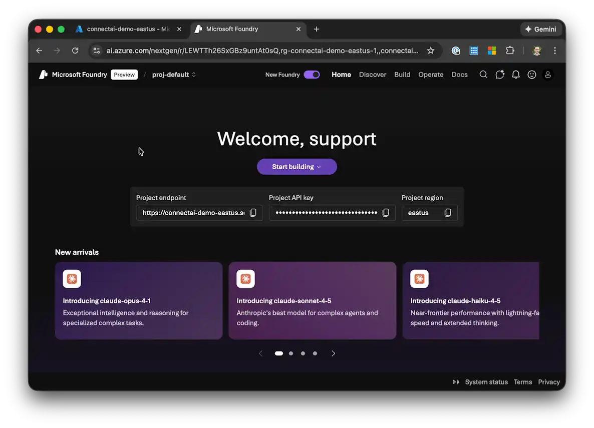 Go to Foundry portal をクリックして Azure AI Foundry ポータルにアクセス。