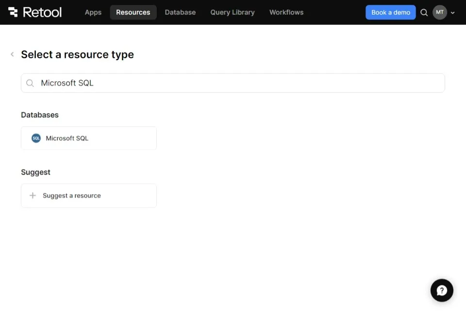 - Retool にログインし、Resources に移動します。右上のConnect New をクリックし、Resources を選択します。