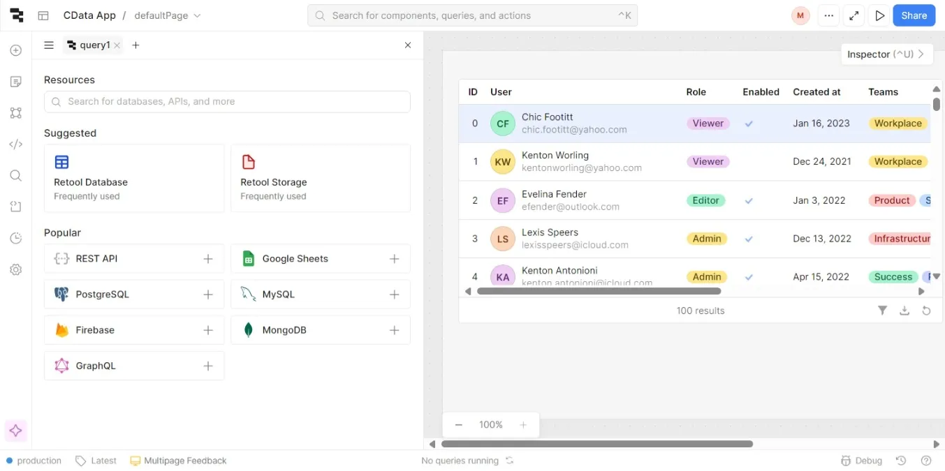 CData Connect AI を使用して Quickbase をRetool に統合したので、リアルタイムデータを最大限に活用しましょう。シンプルなアプリを構築してみます: