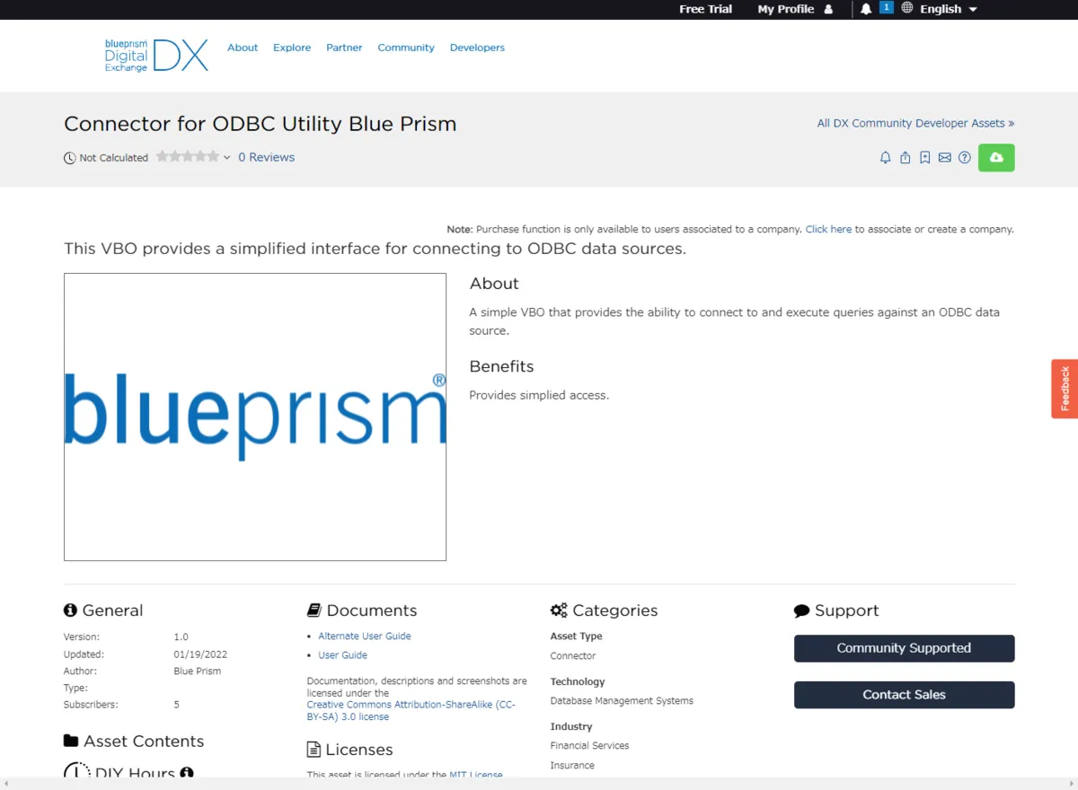 - こちらのURLから「Connector for ODBC Utility Blue Prism」が入手できます。