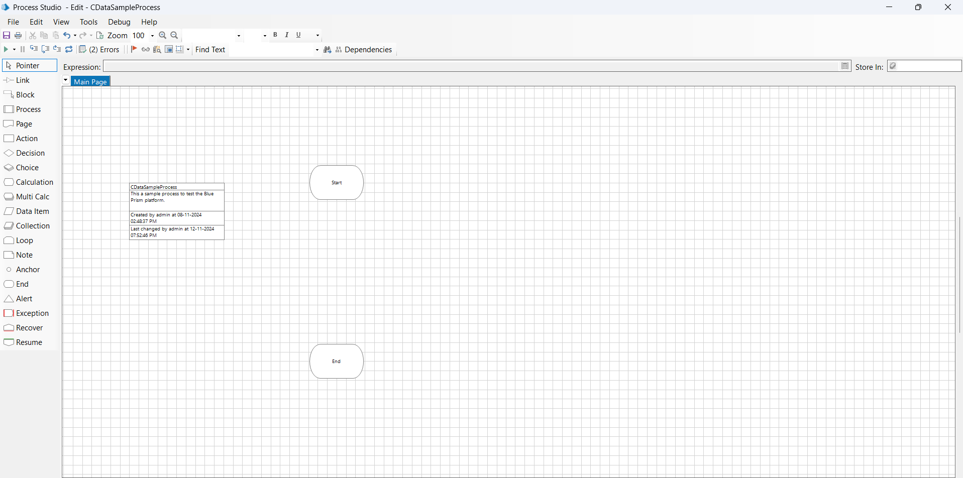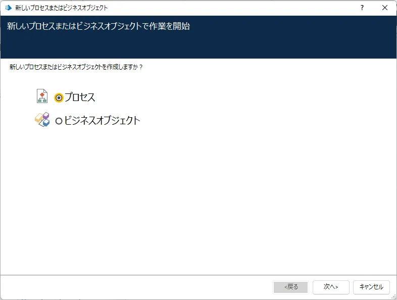 - 「新しいプロセスまたはビジネスオブジェクト」から「プロセス」を選択して、次へ進みます。