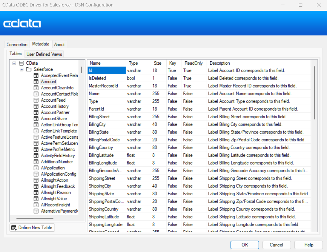 - なお、SELECT Statement で利用するテーブルやカラムの情報はODBC DSN の「テーブル」タブから確認できます。