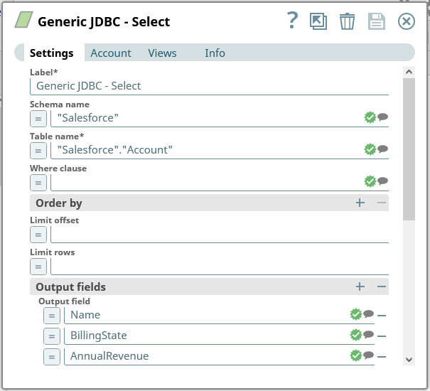 Generic JDBC - Select snap を保存します。