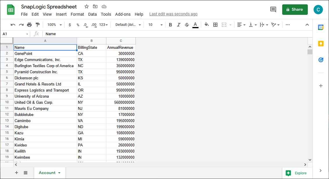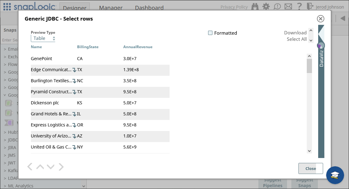 この記事では、データを Google スプレッドシートに読み込みます。サポートされている任意の snap を使用するか、別の CData JDBC Driver と Generic JDBC snap を使用して、外部サービスにデータを移動できます。