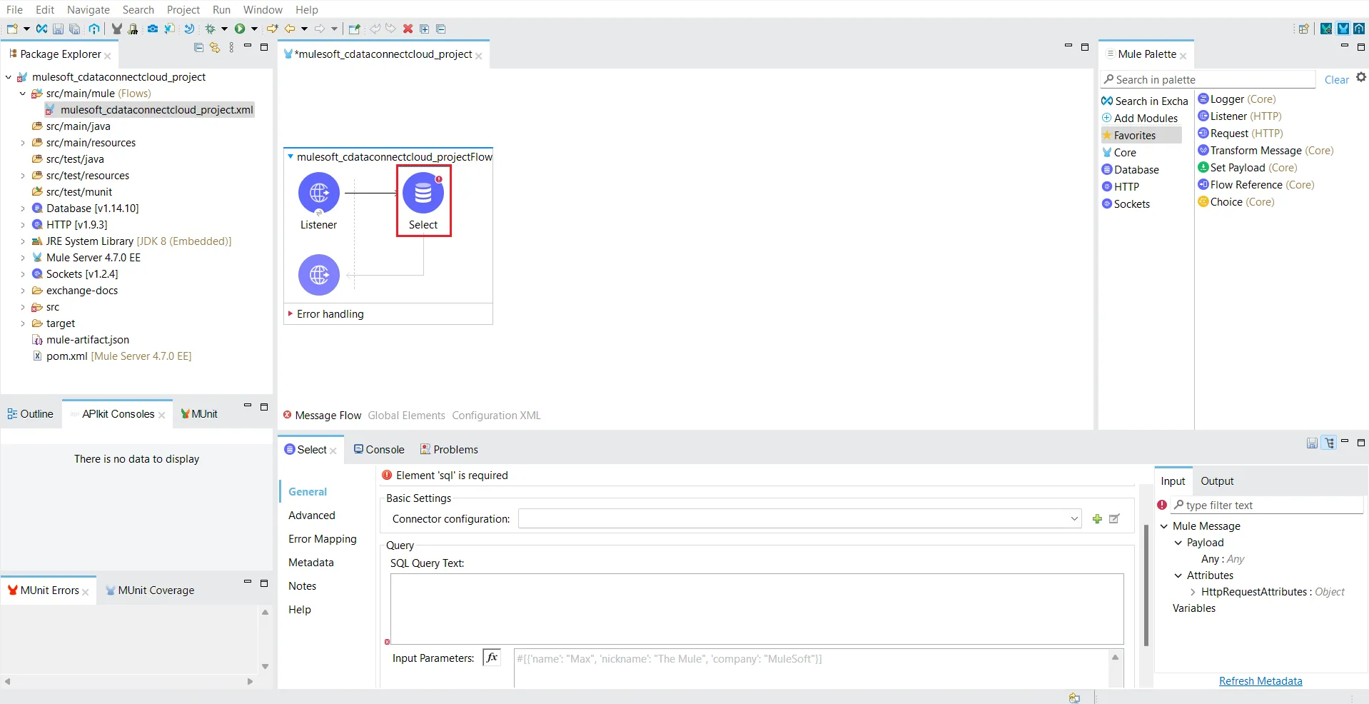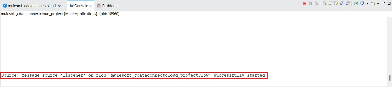 - "Message source 'listener' on flow your_project_name successfully started" というメッセージが表示されたら、指定したエンドポイントでデータのクエリを開始できます。