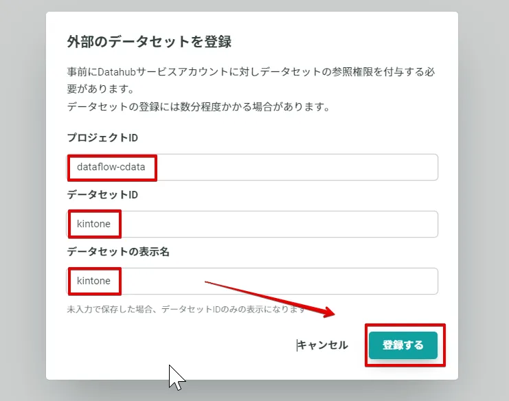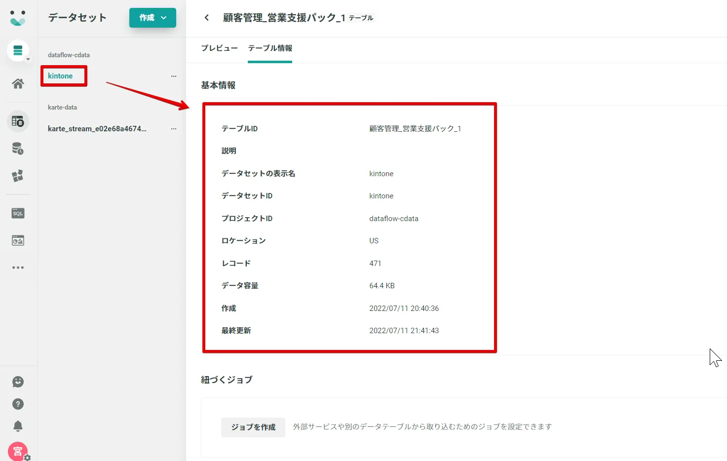 サービスアカウントを登録したら、あとは外部データセットの指定を行うとKARTE Datahub からでもアクセスすることができるようになります。