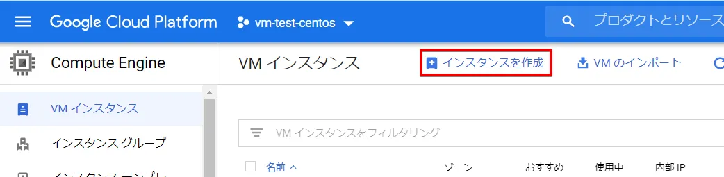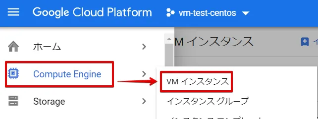 サイドメニューから「Compute Engine」→「VMインスタンス」をクリックします。