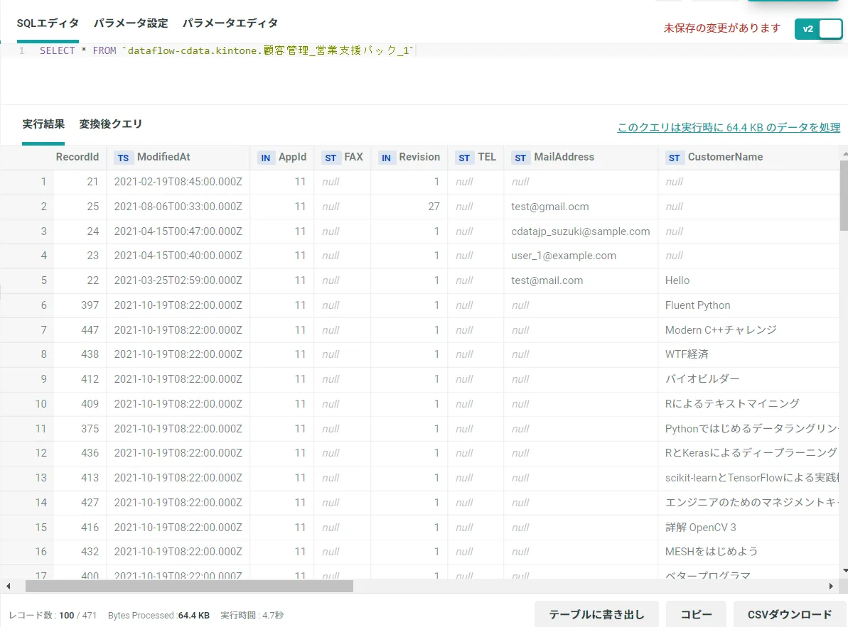 一つポイントとしては、BigQuery は主キー設定がなくレコードを蓄積していくタイプになるので、