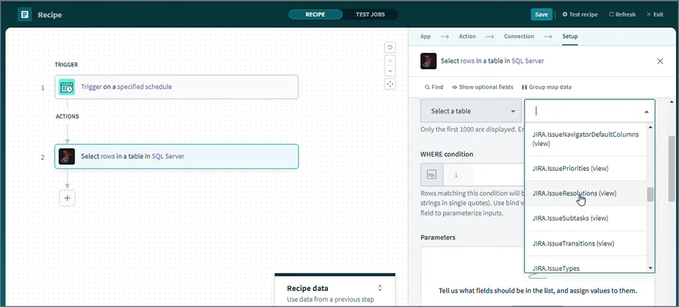 Workato から CData Connect AI 仮想 SQL Server への接続を確立するには、以下の手順に従います。