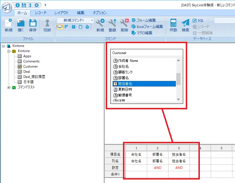 - このようにして作成したコマンドを用いて、SkyLink ではフォームや検索画面、Excel 連携を実施することができます。