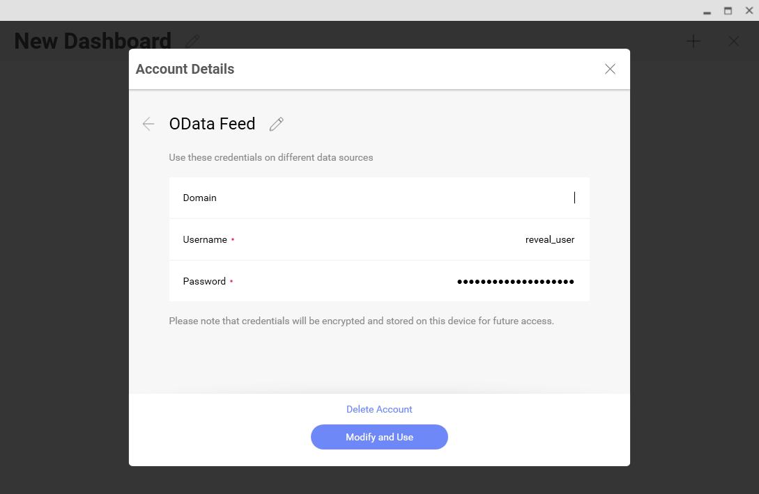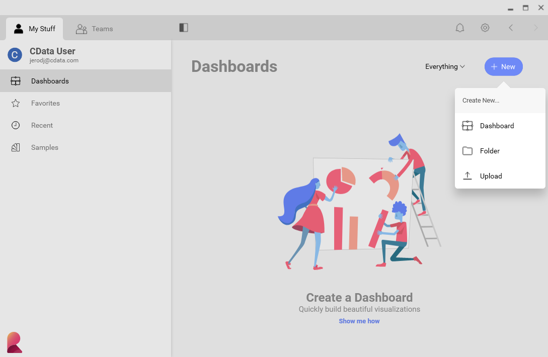 - Reveal にログインし、Dashboards -> New をクリックします。