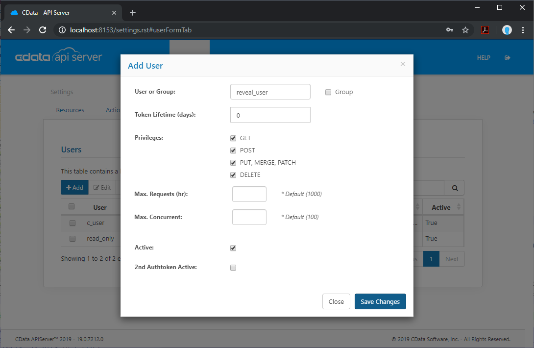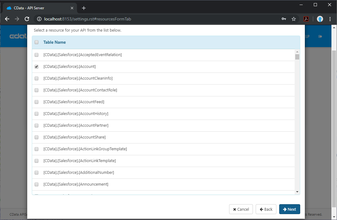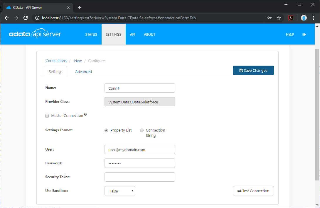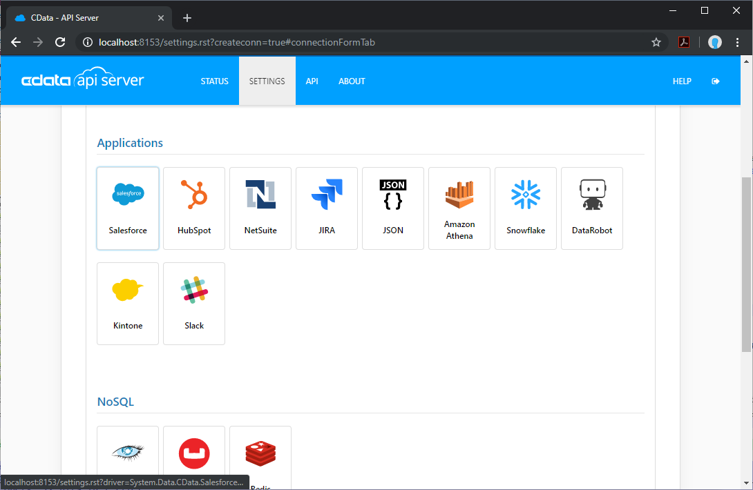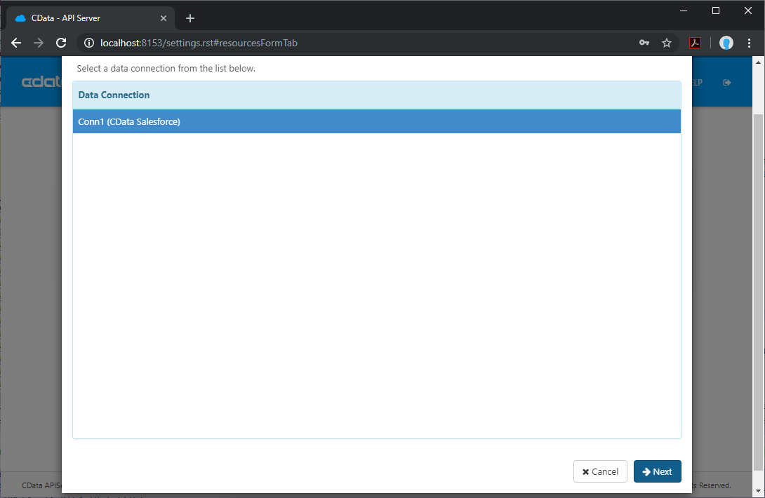 CData API Server は、シンプルなポイント&クリック操作のインターフェースでデータソースに接続し、API を生成できます。
