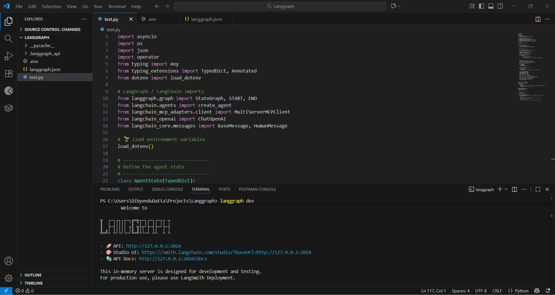 pip install langgraph langchain-openai langchain-mcp-adapters python-dotenv "langgraph-cli[inmem]"