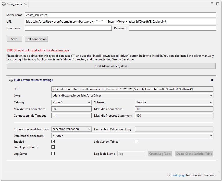 URL を設定します(例:jdbc:zuora:OAuthClientID=MyOAuthClientId;OAuthClientSecret=MyOAuthClientSecret;Tenant=USProduction;ZuoraService=DataQuery;)
