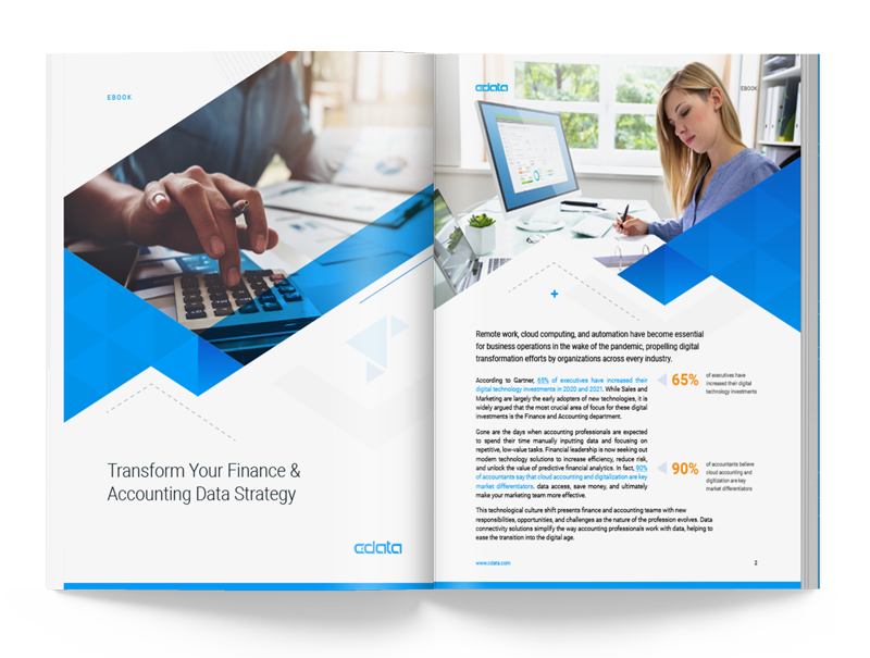 CData の接続ソリューションは、主要な会計システム、CRM、ERP、分析プラットフォームに、クラウドまたはオンプレミスでリアルタイムにアクセスできます。システムを接続することで、財務・会計情報を民主化し、手作業でのデータ入力を削減し、運用コストを削減して、リアルタイムの統合レポートを作成できます。