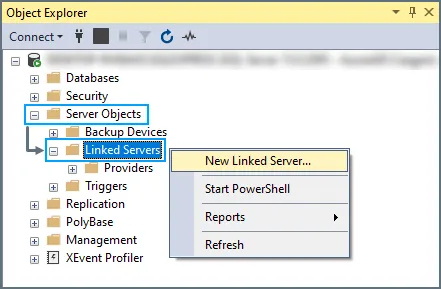 SSMS または SQL コードから直接 Linked Server 接続を作成します。